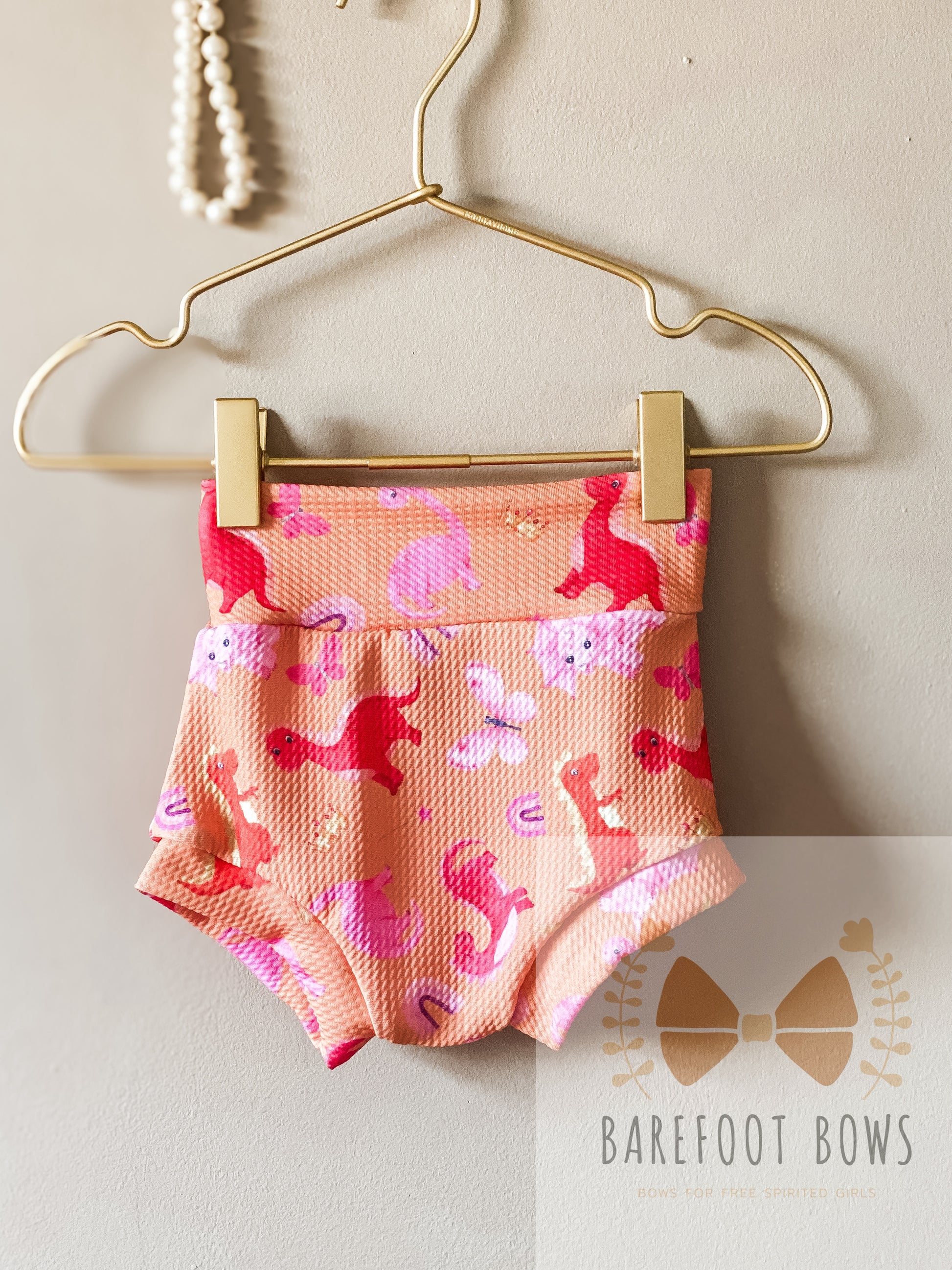 Pink Dinosaur bummie shorts.